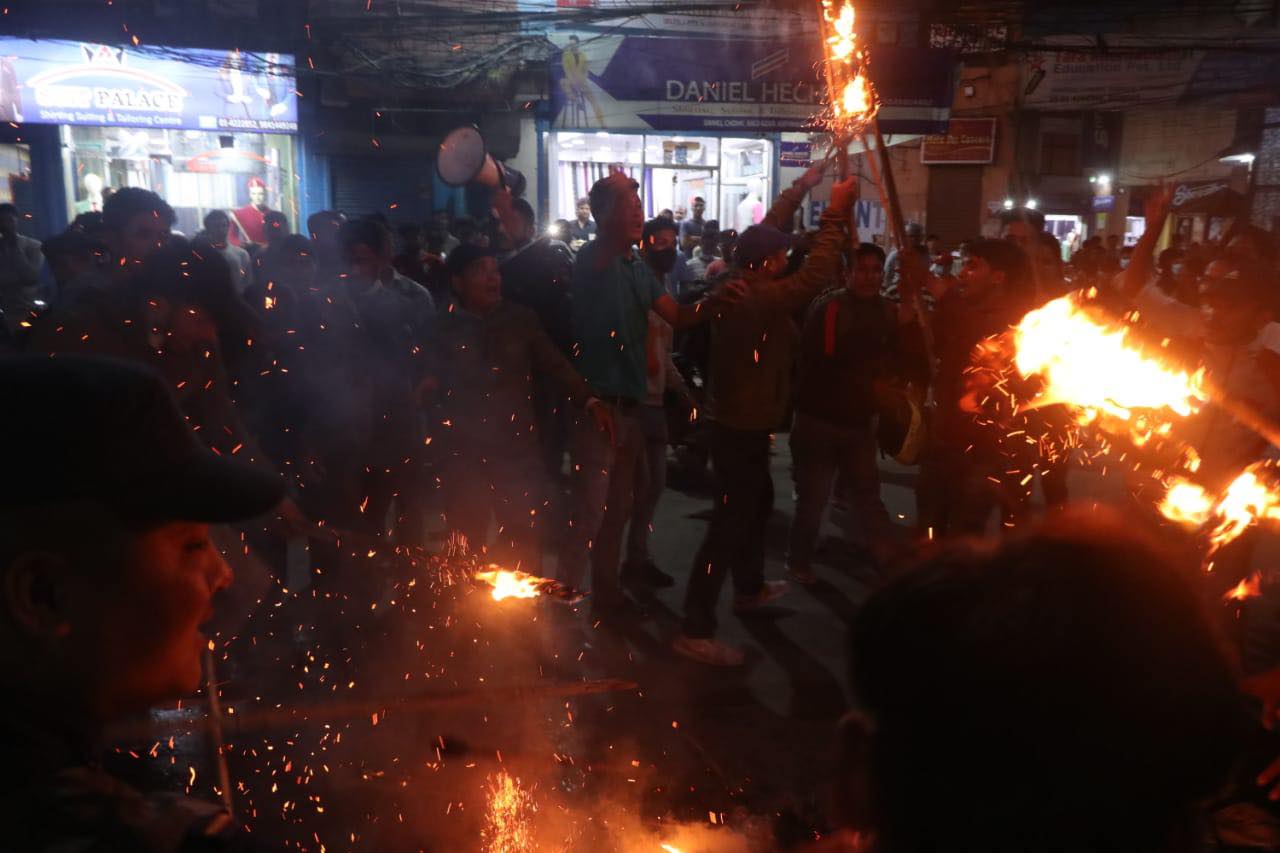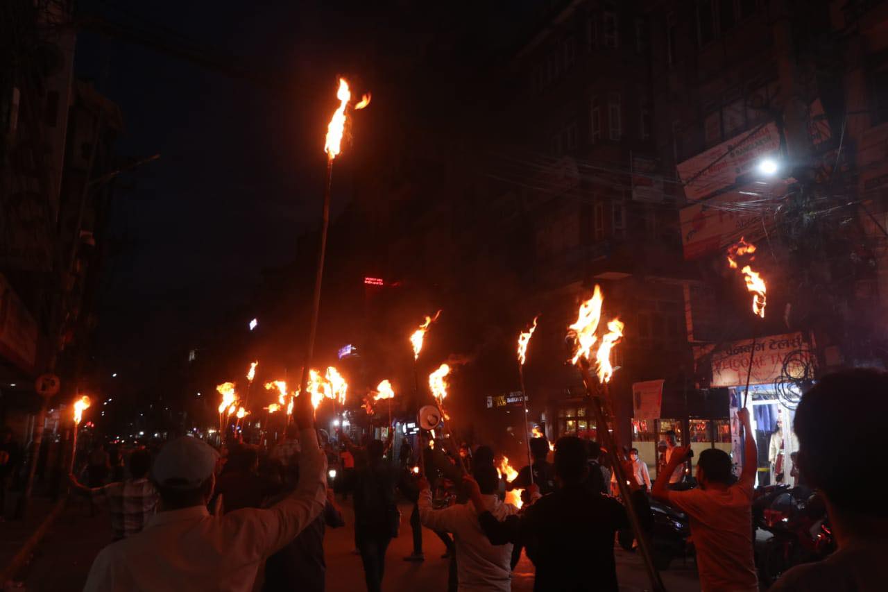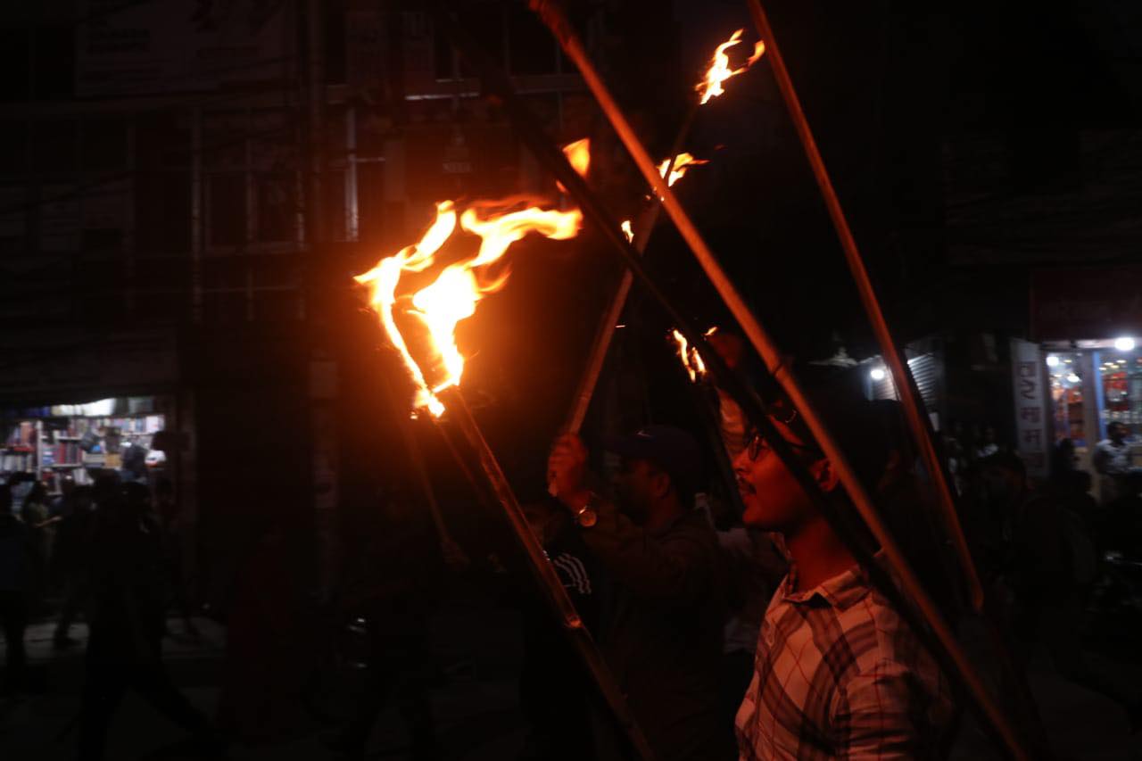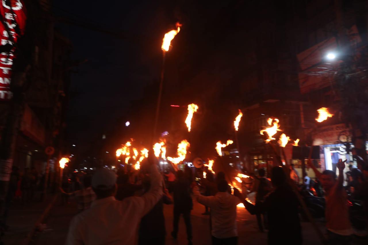 काठमाडौं । नेत्रविक्रम चन्द (विप्लव) नेतृत्वको नेकपाले मंगलबार नेपाल बन्दको घोषणा गरेको छ । त्यसको पूर्व सन्ध्यामा विप्लव नेतृत्वको नेकपाले राजधानी काठमाडौंमा मसाल जुलुस निकालेको छ ।