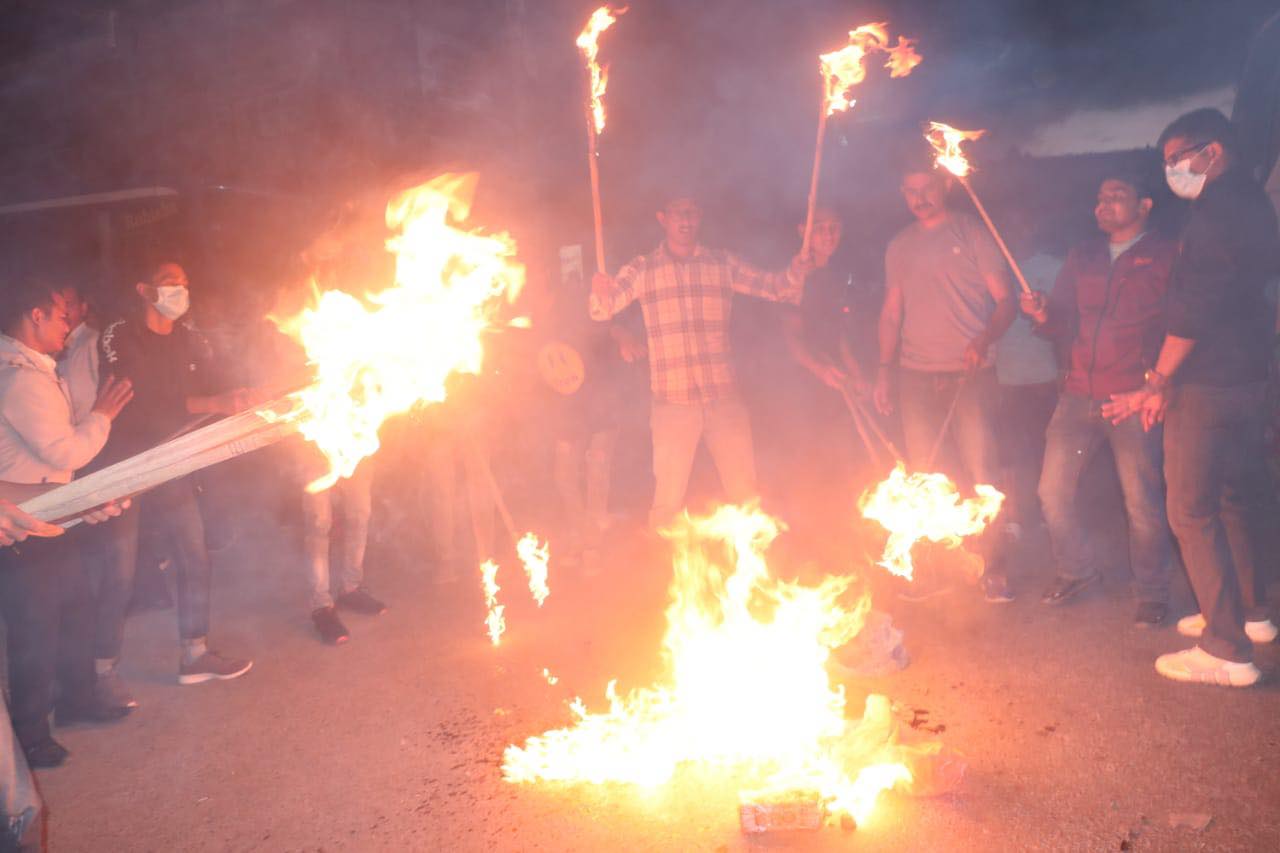तत्कालीन केपी शर्मा ओली नेतृत्वको सरकारले विप्लव नेतृत्वको नेकपासँग गरेको ३ बुँदे सहमति कार्यान्वयन नगरेर उल्टै आफ्ना नेता तथा कार्यकर्तालाई पक्राउ पूर्जी जारी गरेको, एमसीसी, महंगी र राष्ट्रघाती सन्धी सम्झौताविरुद्ध विप्लव नेतृत्वको नेकपासहितका चार दलले मसाल जुलुस निकालेको हो ।