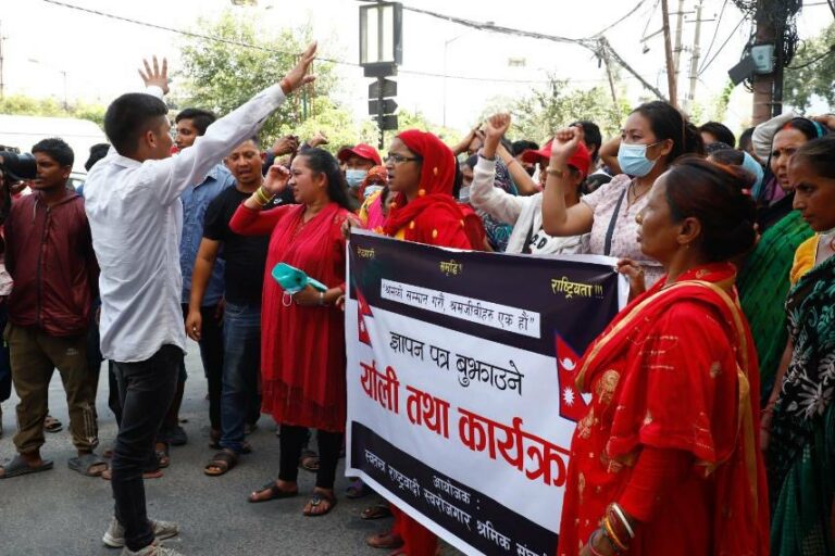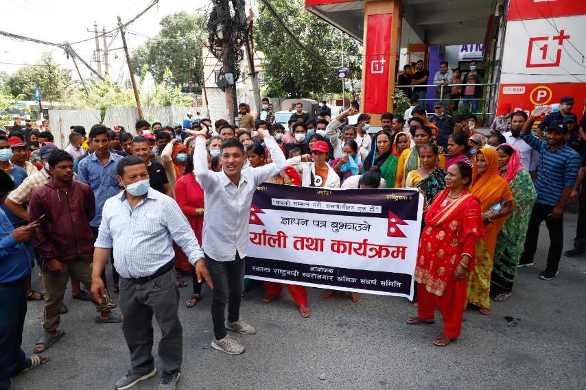 स्वतन्त्र राष्ट्रवादी स्वरोजगार श्रमिक संघर्ष समितिको ब्यानरमा फुटपाथ व्यापारी महानगरको कार्यालय अगाडि प्रदर्शनमा उत्रिएका हुन् ।