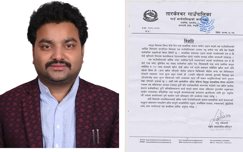 केही दिनदेखि निरन्तर गाउँपालिकाको प्रमुखको नाम जोडेर अनियमितता भएको भन्ने खबर बाहिरिएसँगै गाउँपालिकाले आज त्यस विषयमा थप प्रस्ट पार्दै सत्यतथ्य छानबिनका लागि आग्रह समेत गरेको छ ।
