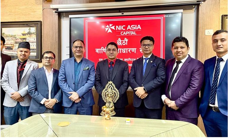 काठमाडौं । एनआईसी एशिया क्यापिटल लिमिटेडको छैठौँ वार्षिक साधारण सभा बुधबार, क्यापिटलको रजिष्टर्ड कार्यालय थापाथलीमा सम्पन्न भएको छ । सभाले सामान्य प्रस्ताव अन्तर्गत आर्थिक वर्ष २०७८/०७९ को सञ्चालक समितिको प्रतिवेदन पारित गर्नुका साथै ०७९ आषाढ मसान्त सम्मको वासलात, नाफा नोक्सान हिसाव तथा नगद प्रवाह विवरणलगायत वार्षिक वित्तीय विवरण उपर छलफल गरी पारित गरेको छ । साथै, उक्त सभाले सञ्चालक समितिले प्रस्ताव गरे बमोजिम चुक्ता पूँजीको ५५ प्रतिशत (करसहित) का दरले हुन आउने ११ करोड रुपैयाँ नगद लाभांश वितरण गर्ने प्रस्ताव समेत पारित गरेको छ ।