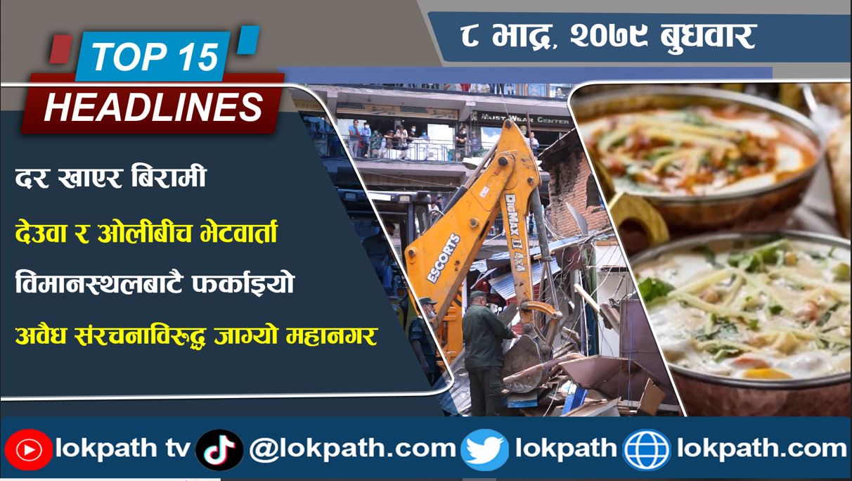 १. काठमाडौंमा बनेका अवैध संरचनाविरुद्ध आक्रामक बन्दै महानगर, बुधबार काठमाडौं मल र आरबी कम्प्लेक्स अगाडी बनाइएका अवैध संरचना भत्काइयो, नियम मिचेर बनाइएका संरचना भत्काउन ३५ दिने अल्टिमेटम ।