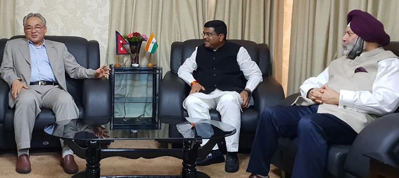 शुक्रबार नेपाल आएका भारतीय पेट्रोलियम मन्त्री प्रधानले गृहमन्त्री थापासँग भेटवार्ता गरेका हुन् ।