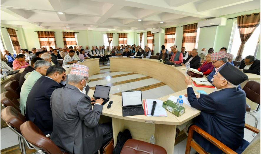 आजको बैठकमा राजनीतिक प्रतिवेदनको सारांश बताउने क्रममा पार्टी अध्यक्ष केपी शर्मा ओलीले सत्ता गठबन्धनका कारण स्थानीय तह निर्वाचनमा सिट संख्याका हिसाबले एमाले दोस्रो भएपनि लोकप्रियताका हिसाबले पहिलो पार्टी बताएका थिए ।