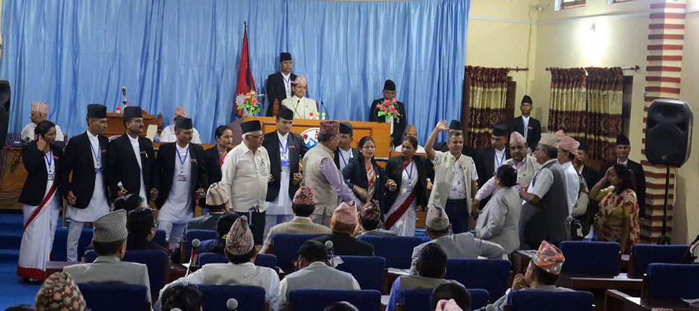 यसअघि प्रतिपक्षी सदस्यले दोस्रो बैठक प्रारम्भ हुनासाथ आआफ्नो स्थानबाट उभिएर विरोध गरेका थिए ।