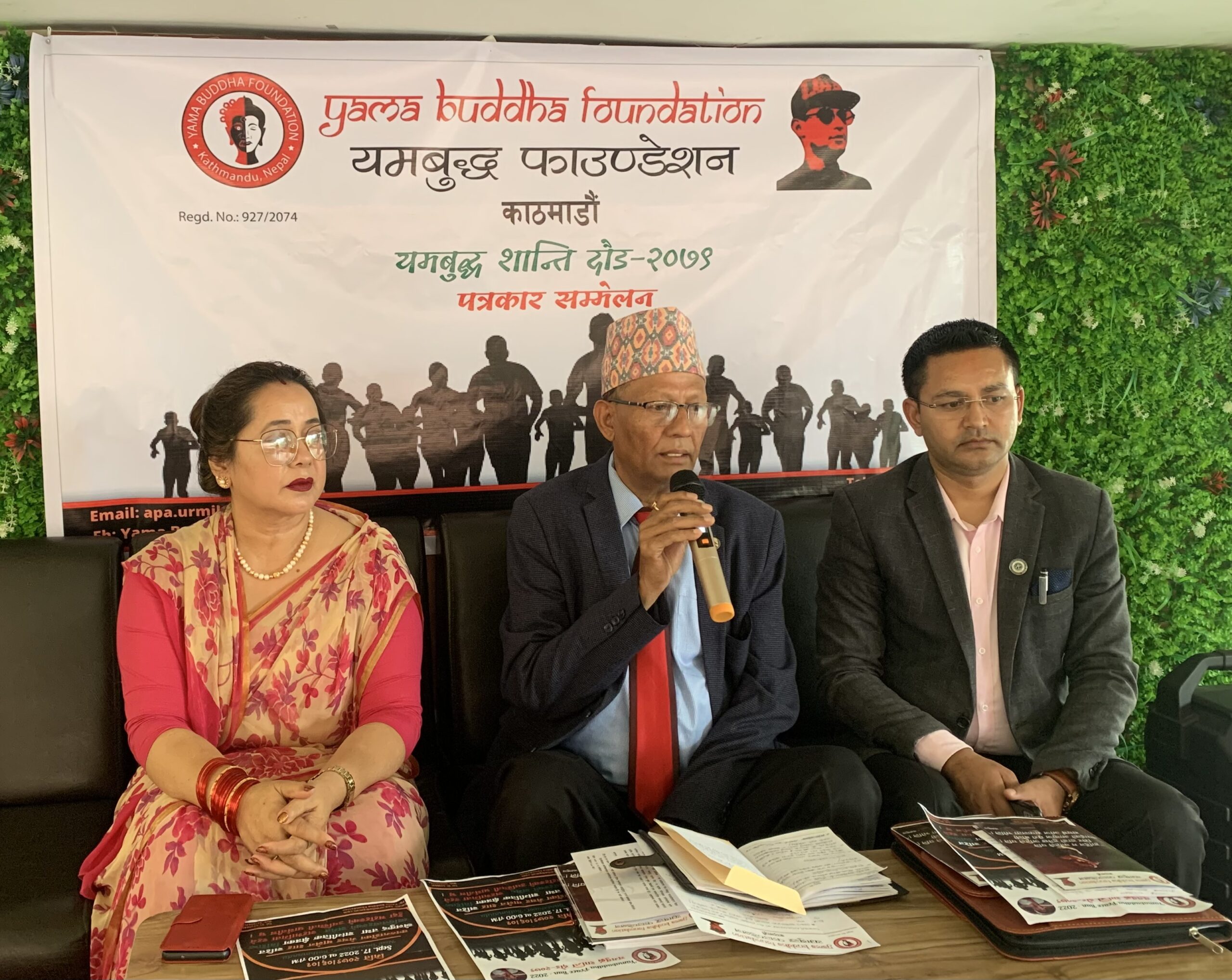 यमबुद्ध फाउन्डेशनले (आज) आईतवार पत्रकार सम्मेलन गर्दै सो कार्यक्रमको बारेमा जानकारी गराएको हो । फाउन्डेशनका अध्यक्ष अम्बिका प्रसाद अधिकारीले शान्ति दौड कार्यक्रममा काठमाडौंका मेयर बालेन शाहसहित खेलकुद तथा सांगीतिक क्षेत्रका विशिष्ठ व्यक्तित्वहरुको समेत सहभागिता रहने जानकारी दिईन् ।
