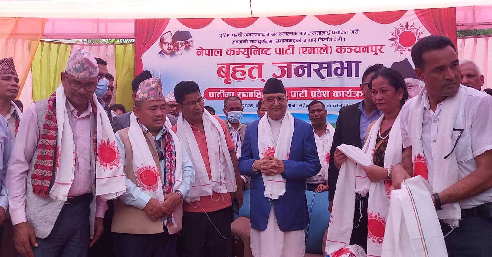 कार्यक्रम विभिन्न पार्टी परित्याग गरेर एमालेमा आएका नेता कार्यकर्तालाई ओलीले टिका लगाएर स्वागत गरेका थिए ।