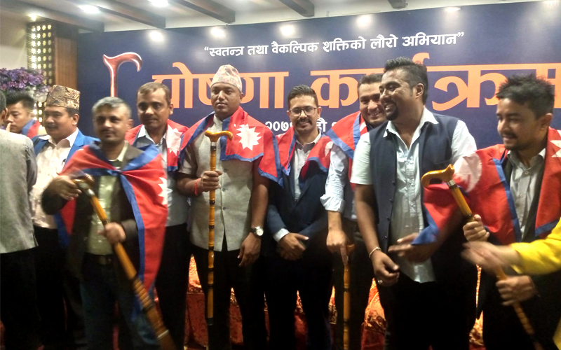 ललितपुरमा आयोजित एक कार्यक्रमका बीच अभियानको घोषणा गर्दै साझा घोषणा पत्र, चुनाव चिन्ह र साझा उम्मेदवार घोषणा गरिएको हाे ।