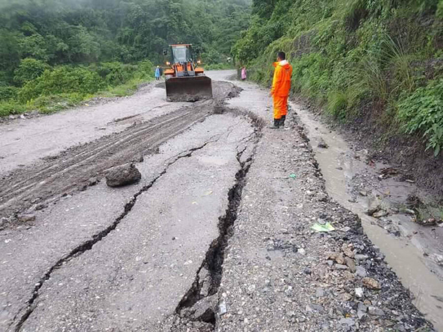 काठमाडौं । सिद्धार्थ राजमार्ग अन्तर्गत पाल्पाको तिनाउँ गाउँपालिका–५ हिउँदेखोला नजिकै करिब ४० मिटर सडक भासिएको छ ।