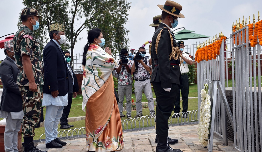 राष्ट्रपति भण्डारीद्वारा तुलाराम पाँडेको तस्बिरमा माल्यार्पण