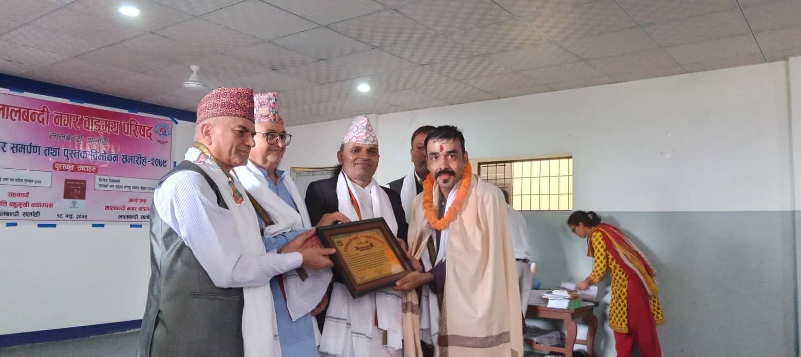 काठमाडौं । साहित्यकार घनेन्द्र ओझालाई ‘गजल सारथि’ सम्मान प्रदान गरिएको छ । सर्लाहीको लालबन्दी नगरपालिकाको लालबन्दी नगर वाङ्मय परिषद्ले शनिबार ओझालाई उक्त सम्मान प्रदान गरेको हो ।