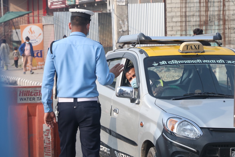 मापसे गरेर ट्राफिक प्रहरीमाथि अभद्र व्यवहार गरेको आरोपमा काठमाडौंको सुकेधाराबाट गएराती ९ बजे बा २ ज ३३४१ नम्बरको ट्याक्सी चालक सुनसरीका ३४ वर्षीय विकास सुनार र कीर्तिपुरबाट बा २ ज ६५४ नम्बरको ट्याक्सी चलाउँदै गरेका ललितपुर उपमहानगरपालिका ९ बस्ने ४६ वर्षीय राजेन्द्र महर्जनलाई साढे ९ बजे नियन्त्रणमा लिएर कारबाहीका लागि पठाइएको हो ।