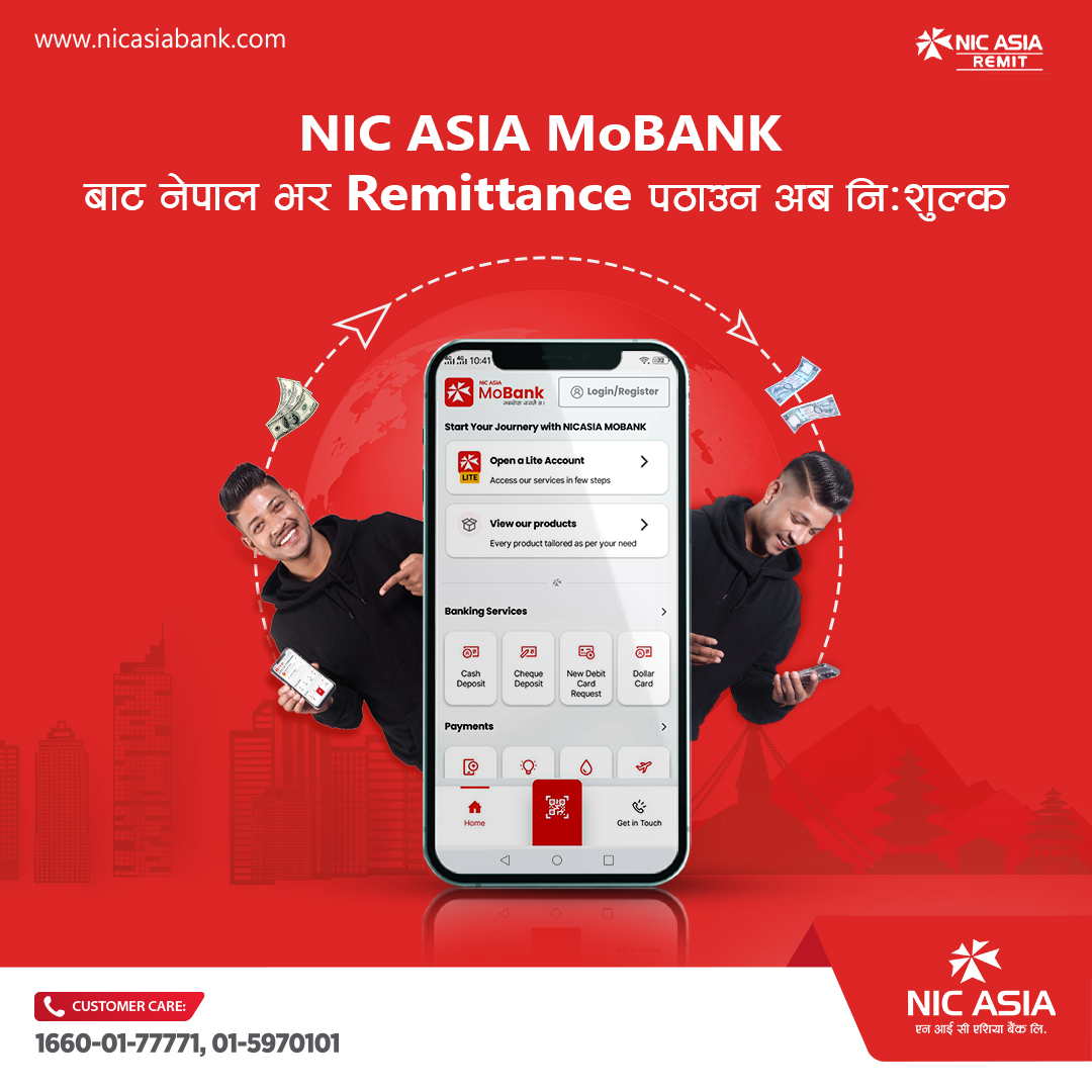 समयअनुरुप विभिन्न ग्राहकमैत्री आकर्षक योजनाहरू ल्याउने क्रममा बैंकले बडा दशैं, दीपावली, नेपाल सम्बत् तथा छठ पर्वको अवसरमा मोबाइल बैंकिङ्ग एप (एनआईसी एशिया मो बैंक) मार्फत दुई महिनासम्म निःशुल्क आन्तरिक रेमिटेन्स पठाउन सकिने योजना सार्वजनिक गरेको हो ।