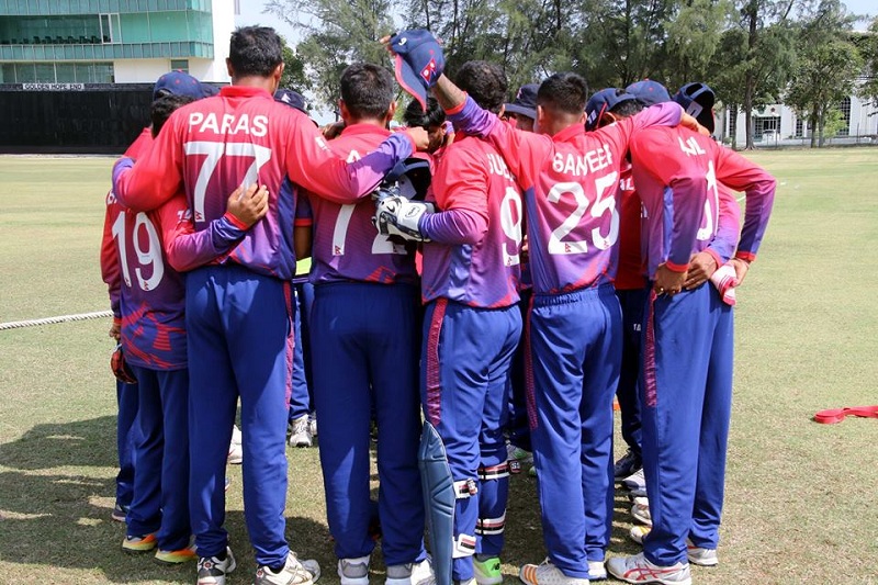 नेपालका ओपनर ब्याट्सम्यान प्रदिप सिंह ऐरी शुन्य रनमा नै आउट भए । तेस्रो नम्बरमा ब्याटिङ गर्न आएका अनिल कुमार शाह ११ रन जोड्दै पेभेलियनमा फर्किए । त्यस्तै करण केसीले नटआउट १४ रनको योगदान दिए । विनोद भण्डारीले मात्र १ रन जोडे