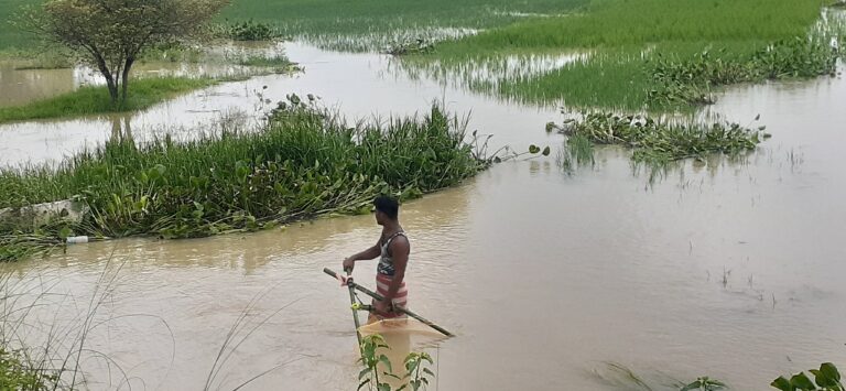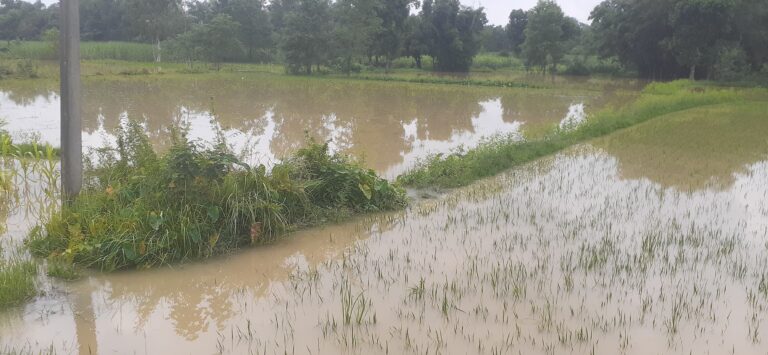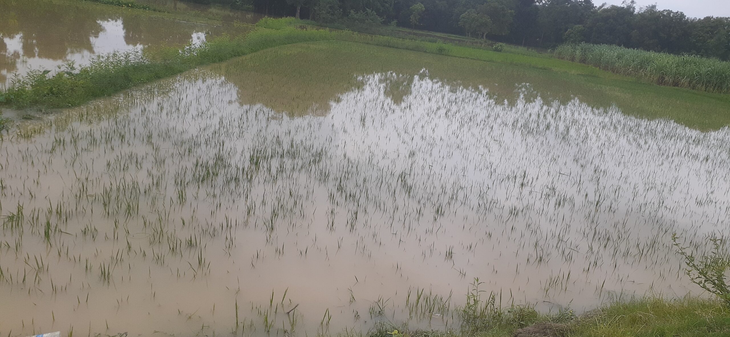 महोत्तरीमा बाढीको बितण्डा, सयौँ बिघा धान खेत डुबानमा