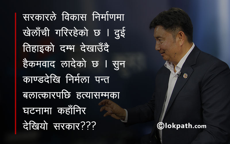 निर्मला पन्तको बलात्कार पछि हत्याका कुरा मात्र नभएर अपहरणकारीलाई इन्काउन्टरमा हत्या गरिएको छ त्यो त हुनै सक्दैन । यी सबै लुकाउन गरिएको छ । छानविन समितिद्वारा नै प्रमाणहरु मेटाउने समितिहरु बनेका छन् यो सबै जनताले देखिरहेका छन् । हामी प्रतिपक्षको भूमिकामा रहेर खबरदारी गरिरहेका छौँ ।