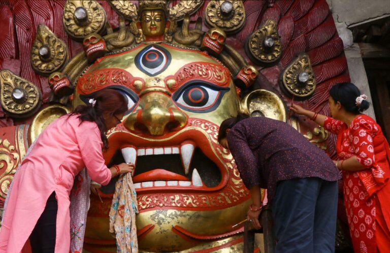 काठमाडौं । इन्द्रजात्रा पर्व बुधबारबाट सुरु भएको छ । यसको अन्तिम दिन शुक्रबार रहेको छ । उक्त दिनका लागि नेपाली सेनाले विशेष प्रस्तुती दिने गरेको छ । जसका लागि सेनाले वसन्तपुरमा रिहर्सल गरेको छ । साथै श्वेत भैरवको मूर्ती सिंगारिएको छ ।
