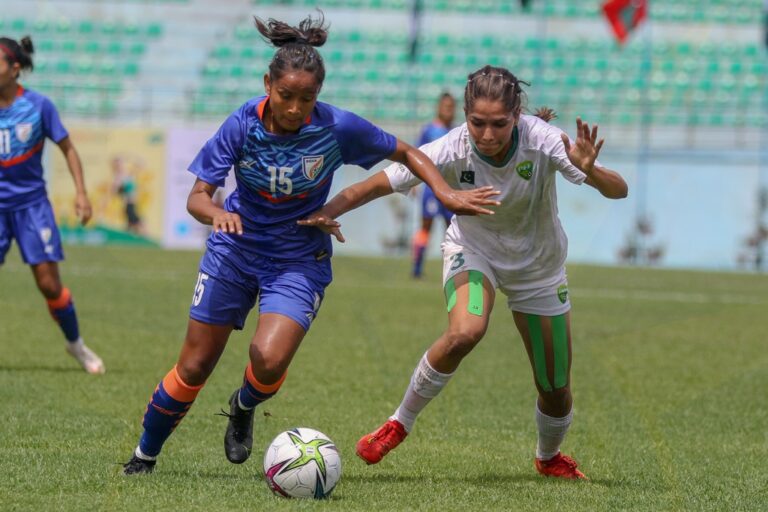 काठमाडौं । नेपालमा जारी छैटौं संस्करणको महिला साफ च्याम्पियनसिप फुटबलमा भारतले जित हात पारेको छ ।