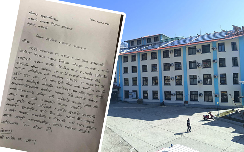 जुम्ला । कर्णाली स्वास्थ्य विज्ञान प्रतिष्ठान जुम्लामा कार्यरत ६० जना कर्मचारीले राजीनामा बुझाएका छन् ।