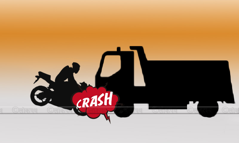 भण्डाराबाट नारायणगढ तर्फ जादै गरेको ना.३.प९८६१ नम्बर ट्रकले नम्बर नखुलेको मोटरसाइकललाई महिलालाई ठक्कर दिएको हो । ट्रकको ठक्रबाट मोटरसाइकलमा सवार सोहन महतोको मृत्यु भएको हो । अर्का एक जना महिला गम्भिर घाइते भएकी छन् ।