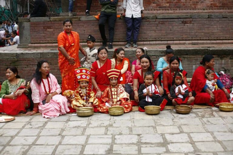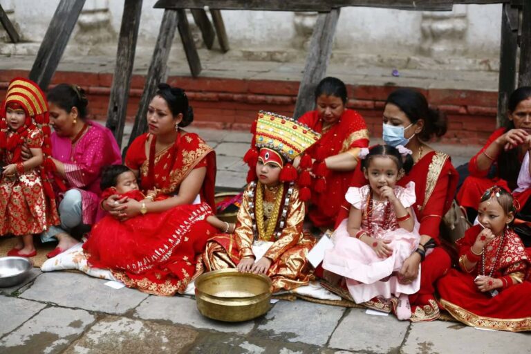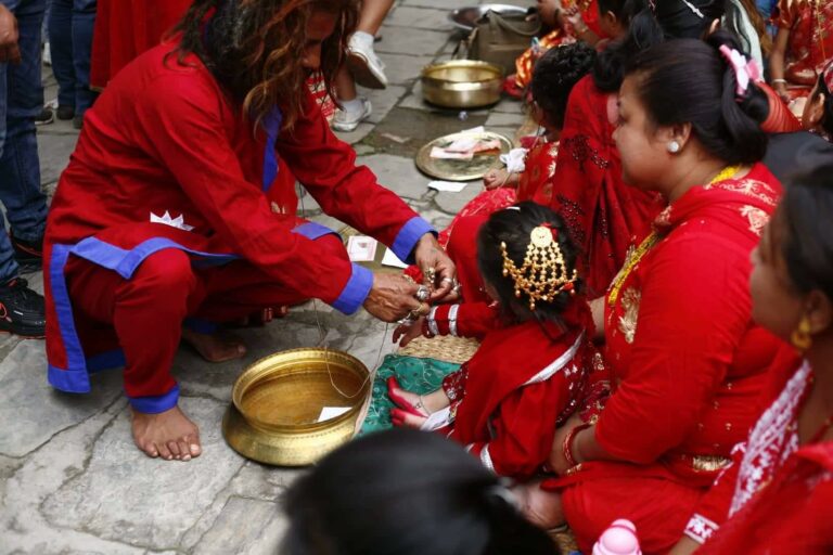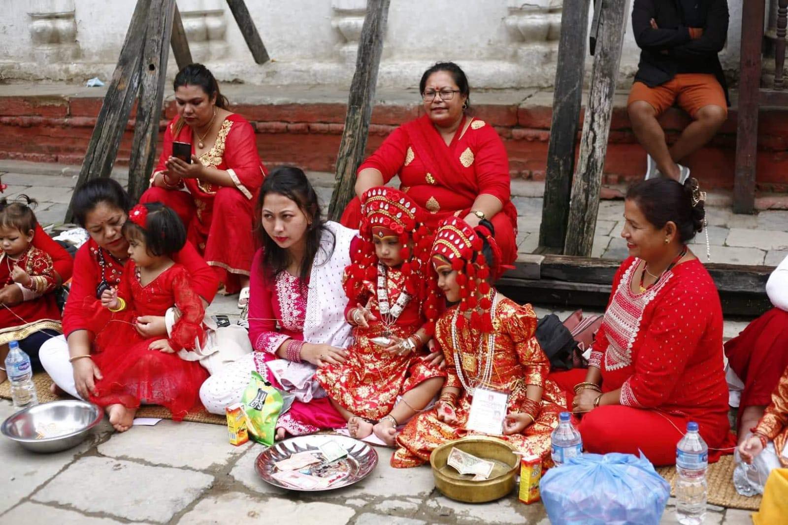 काठमाडौं । हनुमानढोकास्थित वसन्तपुरमा बिहीबार ‘जीवित देवी’को रुपमा पुजिने कुमारीको सामूहिक पूजा गरिएको छ । इन्द्रजात्रा पर्वअनुुसार लिंगो ठड्याएको भोलिपल्ट कुमारीको पूजा गर्ने परम्परा रहेको छ ।