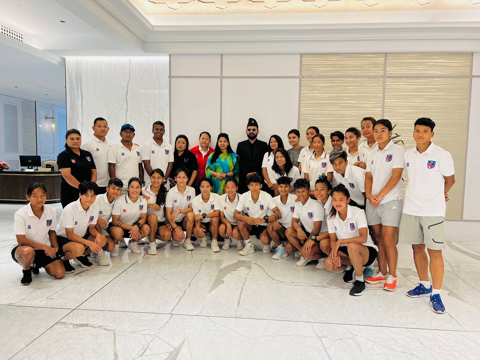 काठमाडौं नेपाली राष्ट्रिय महिला फुटबल टिमलाई काठमाडौं महानगरपालिकाका मेयर बालेन्द्र शाह बालेन र उपमेयर सुनिता डंगोलले भेटेका छन् ।