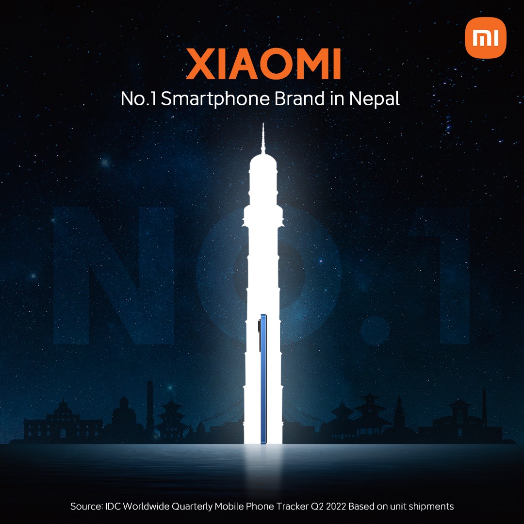 काठमाडौं । ग्लोबल टेक्नोलोजी लिडर शाओमीले आज मार्केट रिसर्च फर्म आइडिसीको विश्वव्यापी मोबाइल फोन ट्रयाकरको दोश्रोत्रैमासिक २०२२ को रिलीज अनुसार आफू नेपालको नम्बर एक स्मार्टफोन कम्पनी बनेको घोषणा गरेको छ ।