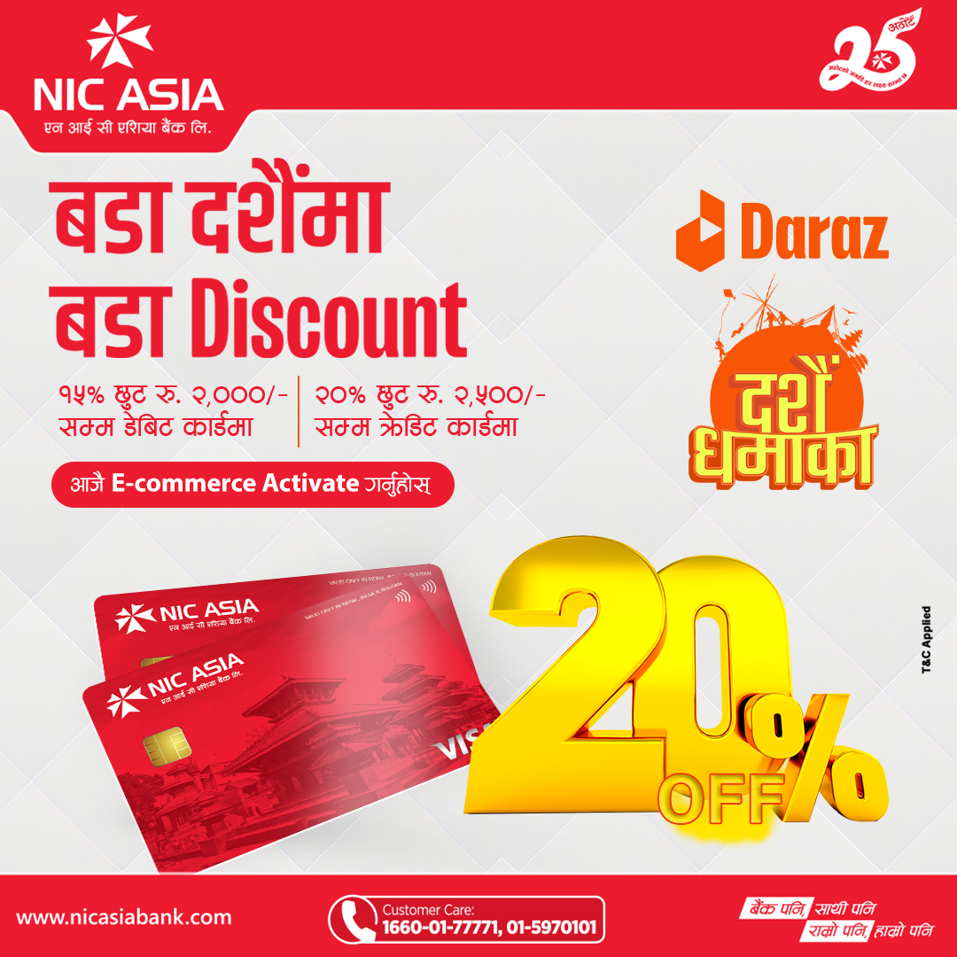 समयअनुरुप आकर्षक ग्राहकमैत्री योजनाहरू ल्याउँदै आएको एनआईसी एशिया बैंकले दशैंको उपलक्षमा दराज ई–कमर्शबाट अनलाईन किनमेल गर्ने आफ्ना ग्राहकलाई आकर्षक छुट प्रदान गर्ने उद्देश्य अनुरुप दराजसँग सम्झौता गरेको हो ।