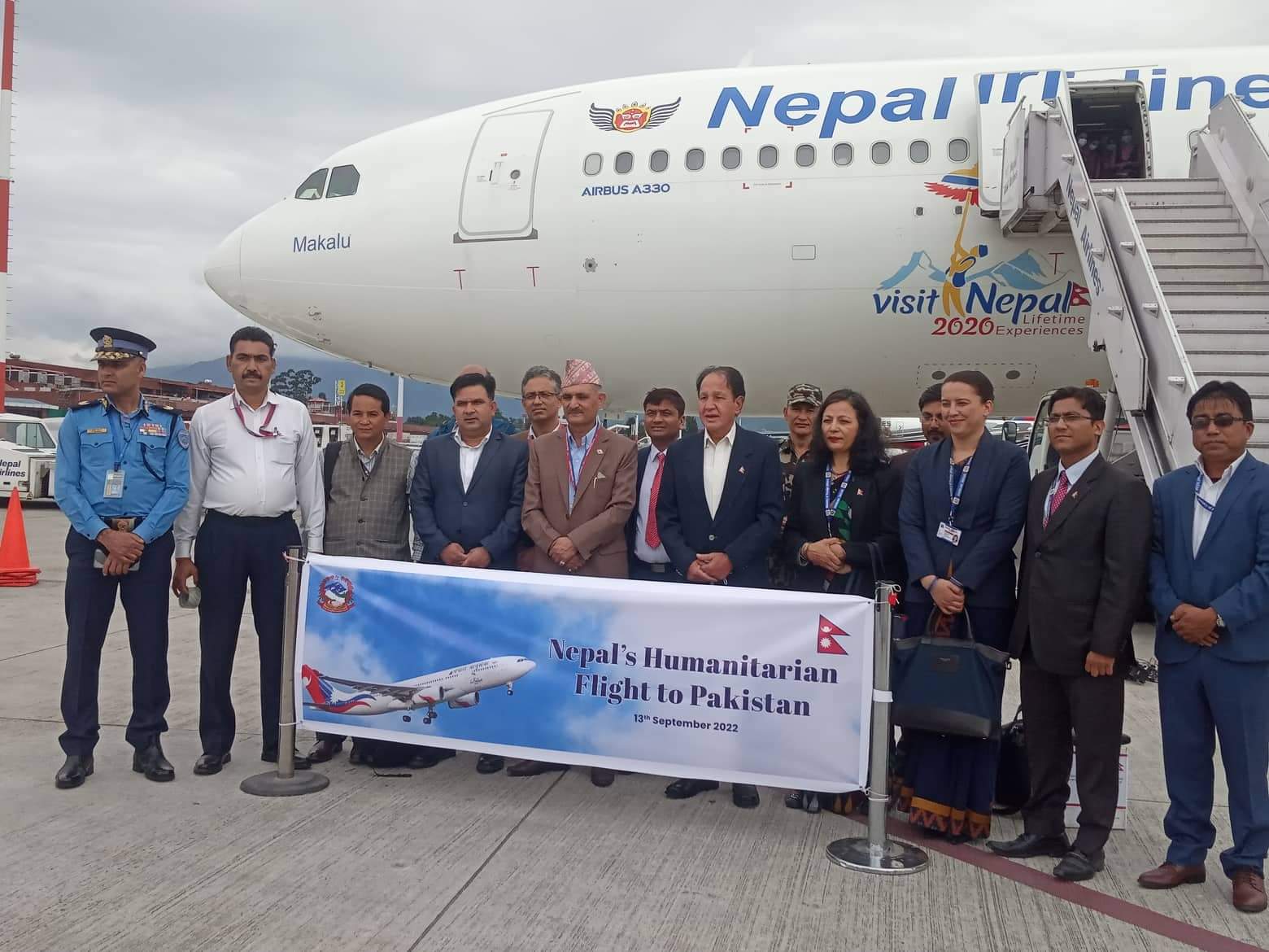 विमानस्थलमा परराष्ट्रमन्त्री डा नारायण खड्काले कराँची जाने टोलीलाई बिदाइ गरेका थिए । राहत सामग्री हस्तान्तरण गर्न परराष्ट्र मन्त्रालयका प्रवक्ता लम्सालको नेतृत्वमा नेपाली प्रतिनिधिमण्डल कराँची प्रस्थान गरेको हो । टोलीमा गृहमन्त्रालय, अर्थमन्त्रालय, राष्ट्रिय विपद् जोखिम न्यूनीकरण तथा व्यवस्थापन प्राधिकरण, स्वास्थ्य सेवा विभागका पदाधिकारी तथा सञ्चारकर्मी सहभागी छन् ।