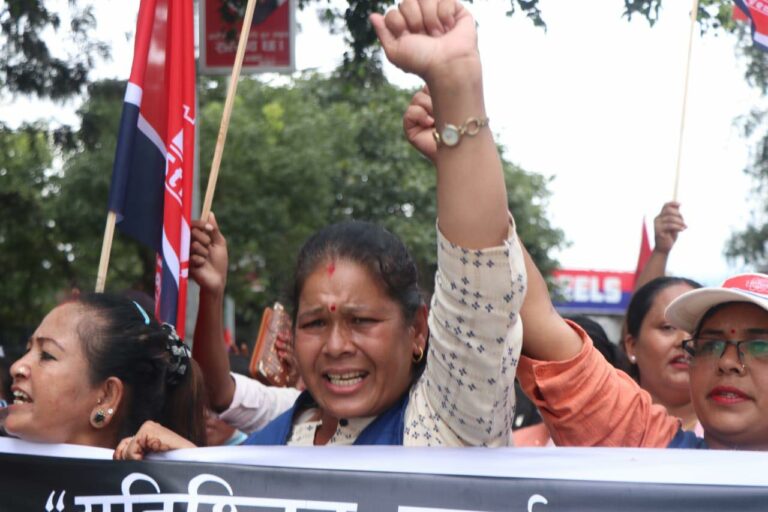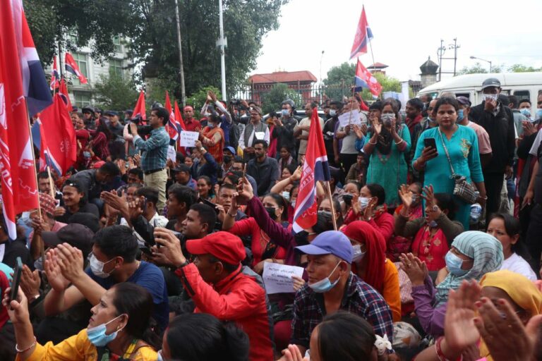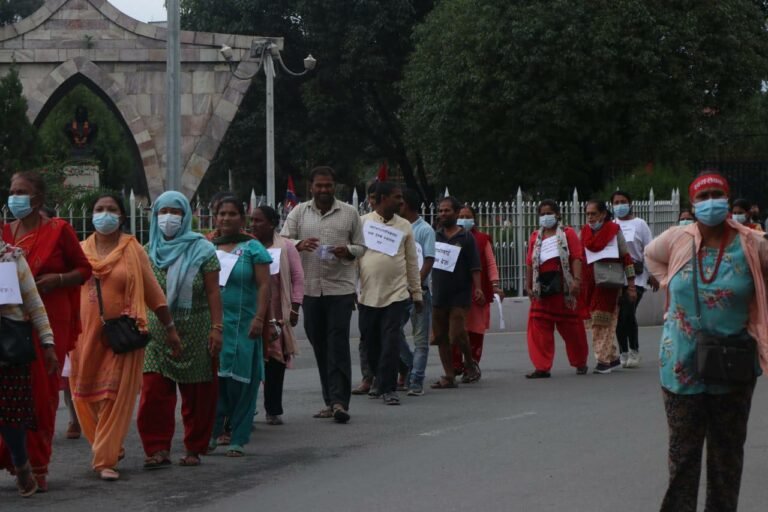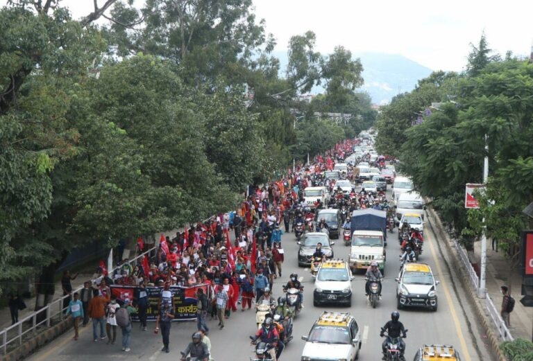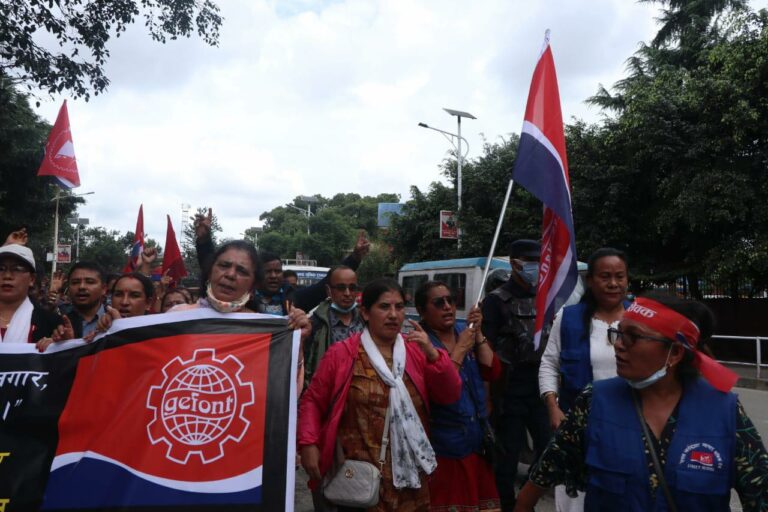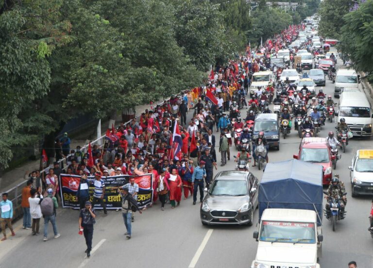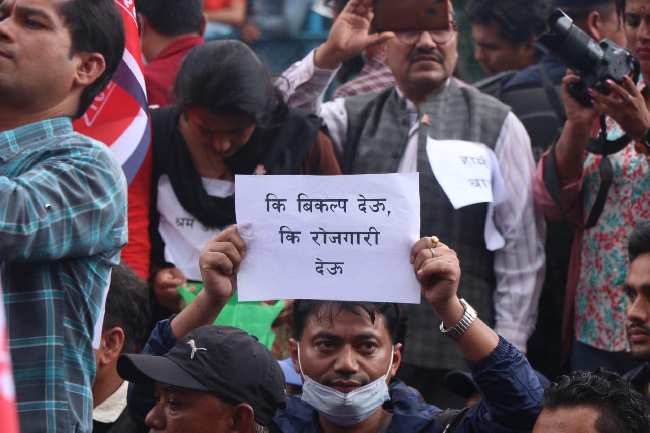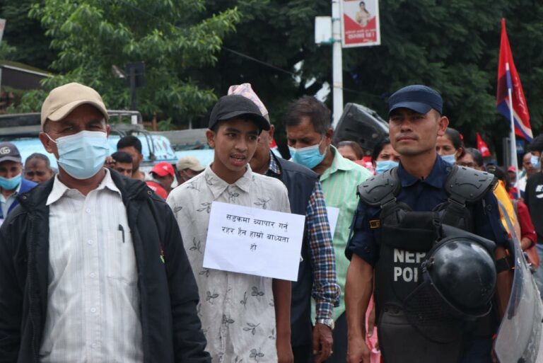 काठमाडौं महानगरले सडकका फुटपाथमा व्यापार गर्न नदिएपछि उनीहरु प्रदर्शनमा उत्रिएका हुन् । एमालेनिकट मजदुर संगठन जिफन्टआवद्ध नेपाल स्वरोजगार श्रमिक व्यापार संघको अगुवामा बिहीबार प्रदर्शन गरिएको छ ।