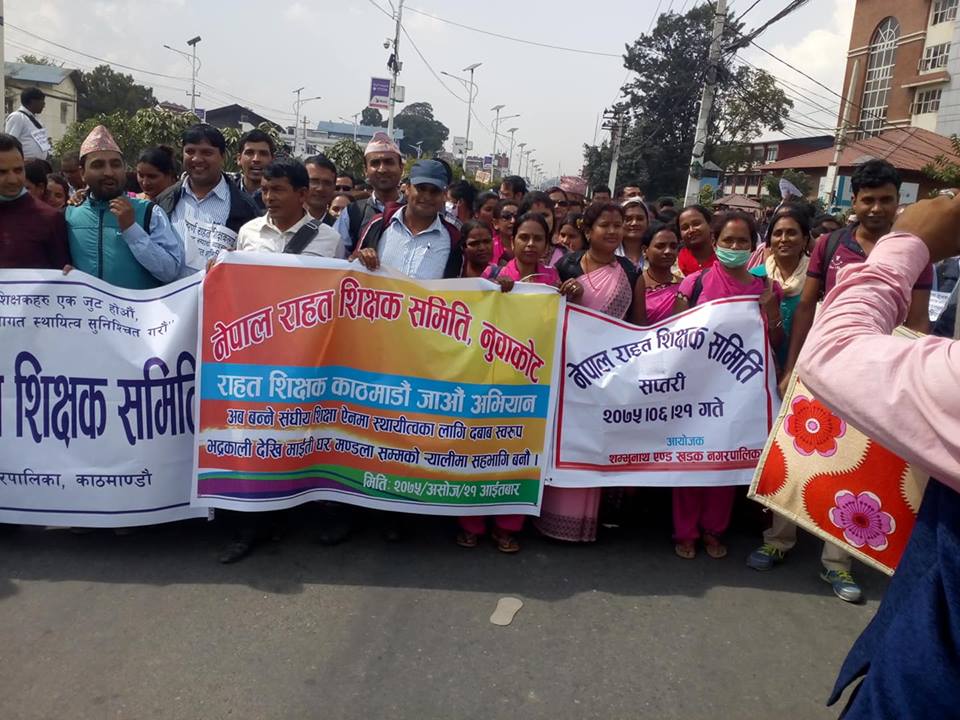 चार बुँदे माग पेश गर्दै देशभरका करिब ४० हजार राहत शिक्षक आन्दोलित भएका थिए ।