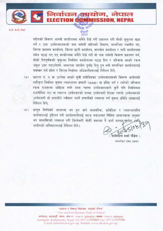 निर्वाचन खर्च समयमा नबुझाएका महानगरपालिकाका प्रमुख र उपप्रमुख पदका उम्मेदवारहरूलाई जनही सात लाख ५० हजार रुपैयाँका दरले र महानगरपालिकाका वडा अध्यक्ष, वडा सदस्य, महिला सदस्य र दलित महिला सदस्य पदका उम्मेदवारहरूलाई जनही तीन लाख रुपैयाँका दरले जरिबाना गर्ने निर्णय भएको आयोगले जनाएको छ ।