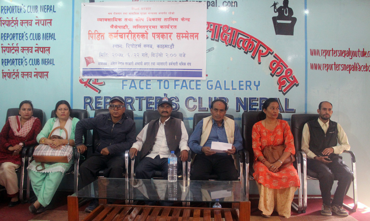 सोमबार रिपोर्टर्स क्लब नेपालमा व्यवसायिक तथा सीप विकास तालिम केन्द भैसेंपाटी र अखिल नेपाल सरकारी अस्थायी करार तथा ज्यालादारी कर्मचारी श्रमिक संघले संयुक्त रुपमा पत्रकार सम्मेलन गर्दै यस्तो चेतावनी दिएका हुन् ।