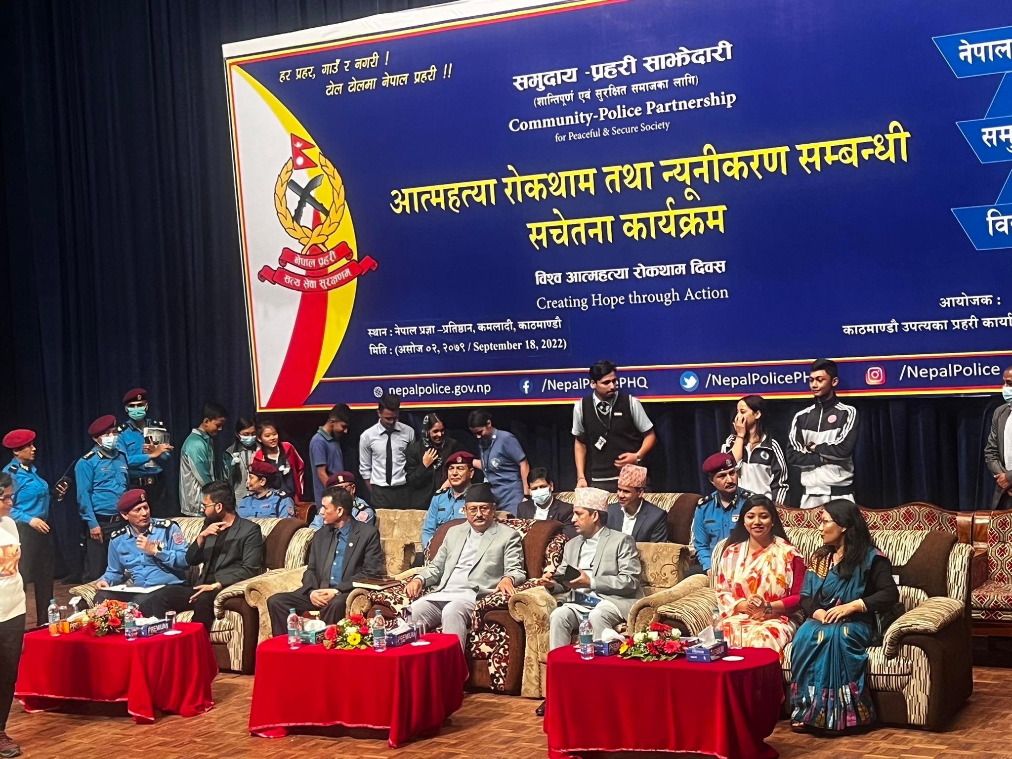 कार्यक्रममा प्रहरी महानिरीक्षक धिरजप्रताप सिंहले नेपालमा आत्महत्या सम्बन्धीत तथ्यांक दिन प्रतिदिन बढ्दै गइरहेको भन्दै चिन्ता व्यक्त गरे । उनले आर्थिक वर्ष २०७७/७८ मा कोभिडको बेलामा ९ हजार ४ सय ९ जनालाई कोभिडका कारणले गुमाएको र सोही अवधिमा ७ हजार १ सय ४१ जनाले आत्महत्या गरेको तथ्यांक बाहिरिएको बताए । उनले कोरानाले आक्रान्त बनाएको बेलामा कोभिडका कारण भन्दापनि आत्महत्याका कारण ज्यान गुमाउनेको संख्या धेरै भएको बताए ।