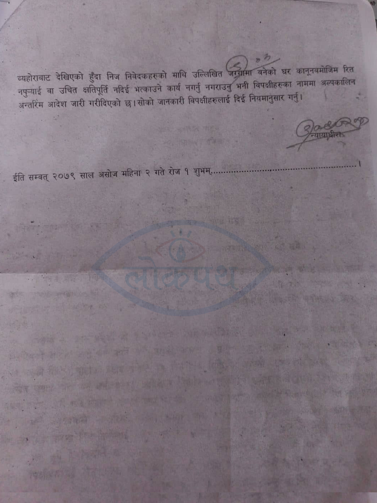 टुकुचामाथि बनेका घर नभत्काउन उच्च अदालतकाे आदेश (पत्रसहित)