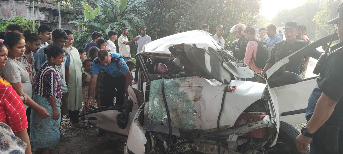 जिल्ला प्रहरी कार्यालय झापाका प्रवक्ता प्रहरी नायब उपरीक्षक वसन्त पाठकका अनुसार पूर्वबाट पश्चिमतर्फ आउँदै गरेको बा १४ च ९१०८ नम्बरको कार पूर्व–पश्चिम राजमार्गअन्तर्गत झापाको शिवसताक्षी १० मा दुर्घटना भएको थियो । अत्यधिक गतिका कारण अनियन्त्रित भएको कार बरको रूखमा ठोक्किएको थियो ।
