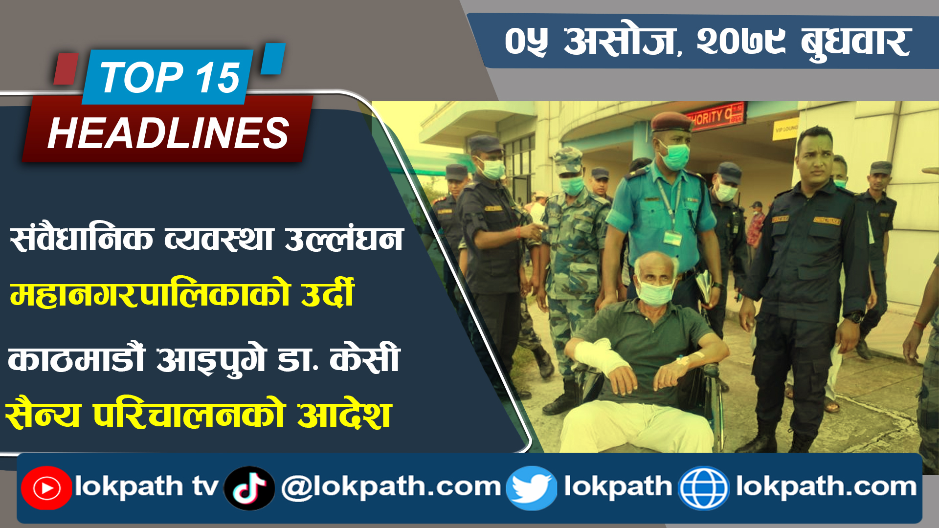 ४. राष्ट्रपतिको कदमविरुद्ध अदालत जाने तयारीमा रहेको नेकपा माओवादी केन्द्रमा अध्यक्ष प्रचण्डको भनाइ, राष्ट्रपतिको कदमविरुद्ध आजैदेखि युवा विद्यार्थीहरु सडकमा आन्दोलित भइसकेकाले अब संघर्ष नरोकिने अडान ।