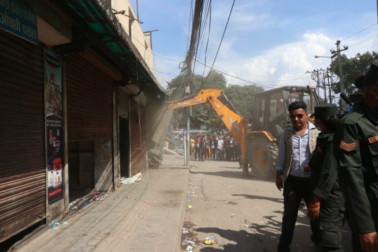 काठमाडौं महानगर प्रहरीले वडा नम्बर २७ को वडा कार्यालयको सिफारिसमा ८ वटा सटर भत्काएकाे हाे ।