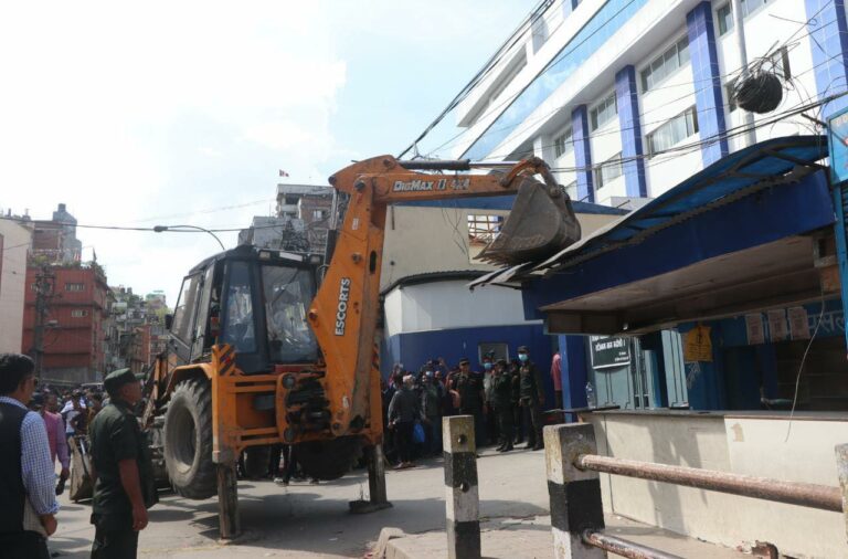 काठमाडौं । काठमाडौं महानगरपालिकाले वीर अस्पताल परिसरको औषधि पसल रहेका सटरहरू भत्काएको छ ।