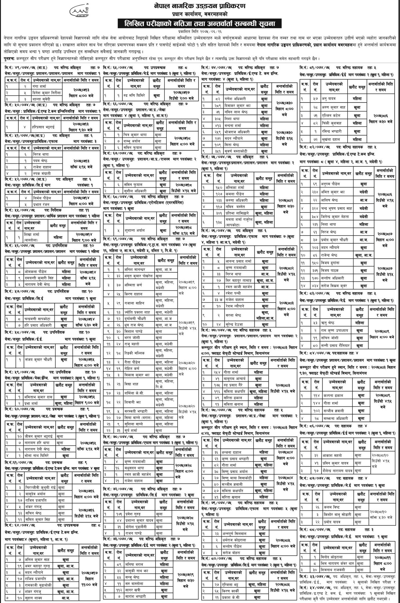 नतिजा अनुसार नाम निस्किएका उम्मेदवारलाई प्राधिकरणले विभिन्न मितिमा अन्तर्वार्ताका लागि बोलाएको छ ।