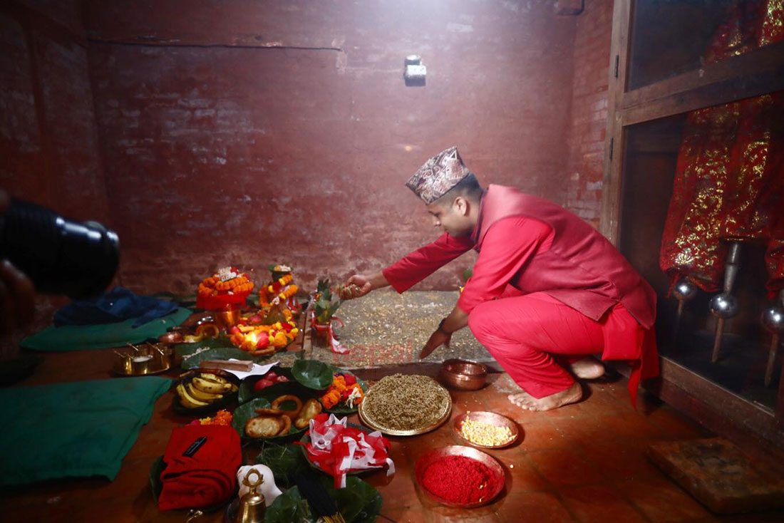 जमरा राखेपछि हनुमान ढोका दरबारका पूजारी सागर खरेलले नियमपूर्वक मन्त्रोच्चारण गरी घटस्थापना र जमरा राखिएको बताए । विशेषतः जमरा जौ को राख्ने गरिन्छ । तर, आजभोलि भने मकै र गहुँ पनि मिसाएर जमरा राख्ने प्रचलन छ ।