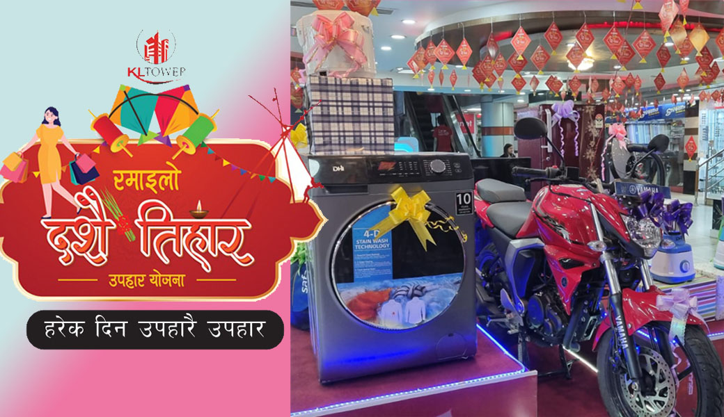 काठमाडौं । केएल टावरले दसैँ तिहारका लागि उपहारै उपहारसहितको ‘रमाइलो दसैँ तिहार’ उपहार योजना सुरु गरेको छ । योजना अन्तर्गत ग्राहकले दैनिक, साप्ताहिक तथा बम्पर उपहारहरु पाउने छन् ।