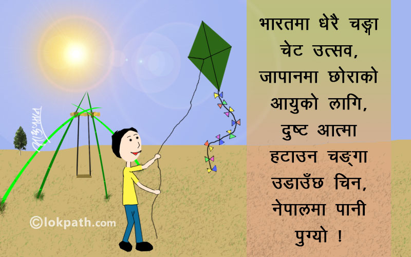 नेपालमा : किंवदन्ती अनुसार स्वर्गका राजा इन्द्रसम्म ‘वर्षा चाहिँदैन’ भन्ने सन्देशपु¥याउनका लागि चङ्गाको प्रयोग गरिएको हो भन्ने किंवदन्ती छ ।वर्षायाममा धेरै पानी परिसकेकाले धान पाक्ने बेला पानी चाहिँदैनभनेर इन्द्रलाई उक्त सन्देश पठाइन्छ । चङ्गा उडाएमा पानी पर्दैन भन्ने जनविश्वास परपूर्वकालदेखि नै रहिआएको छ ।