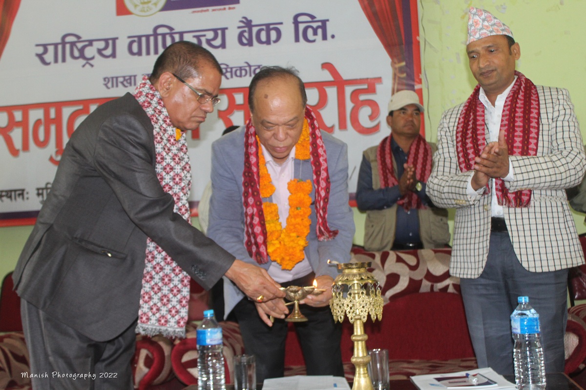 बैंकको कर्णाली प्रदेशिक कार्यालयका उपप्रमुखको केसबराज खनालको सभापितत्वमा सम्पन्न भएको कार्यक्रममा पूर्व प्रदेश मन्त्री एवं सांसद माननीय गोपाल प्रसाद शर्मा, प्रदेश सांसद माननीय देवी ओली, आठबिसकोट नगरपालिकाका प्रमुख रबि के.सी.,मुसिकोट नगरपालिकाका प्रमुख महेन्द्र के.सीलगायतको सहभागिता थियो ।