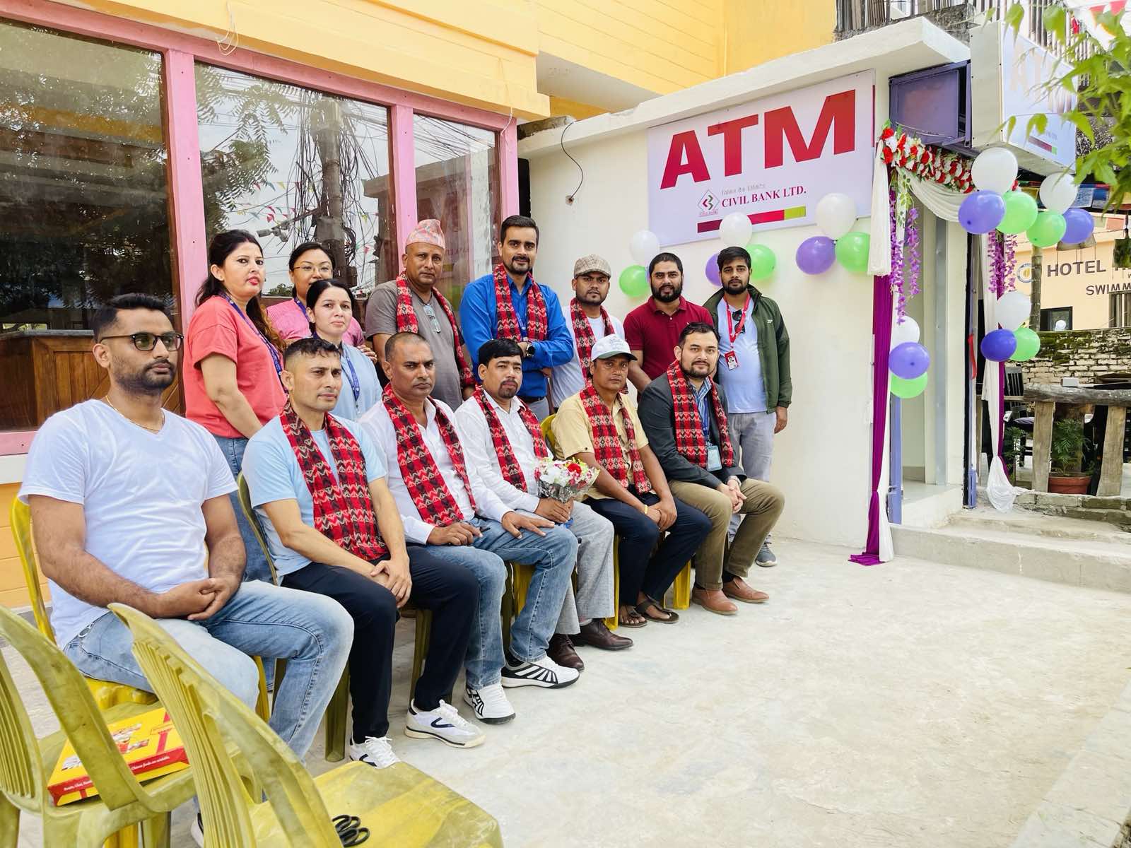 करिब आठ लाख ग्राहकहरुलाई १ सय १५ शाखाहरु र १३ एक्सटेन्सन काउन्टरहरु मार्पmत सेवा प्रदान गरिरहेको सिभिल बैंकको हालसम्म यस एटीएमसहित देशका विभिन्न १ सय २ ठाउँहरुमा एटीएम स्थापित गरि सञ्चालन ल्याएको छ ।