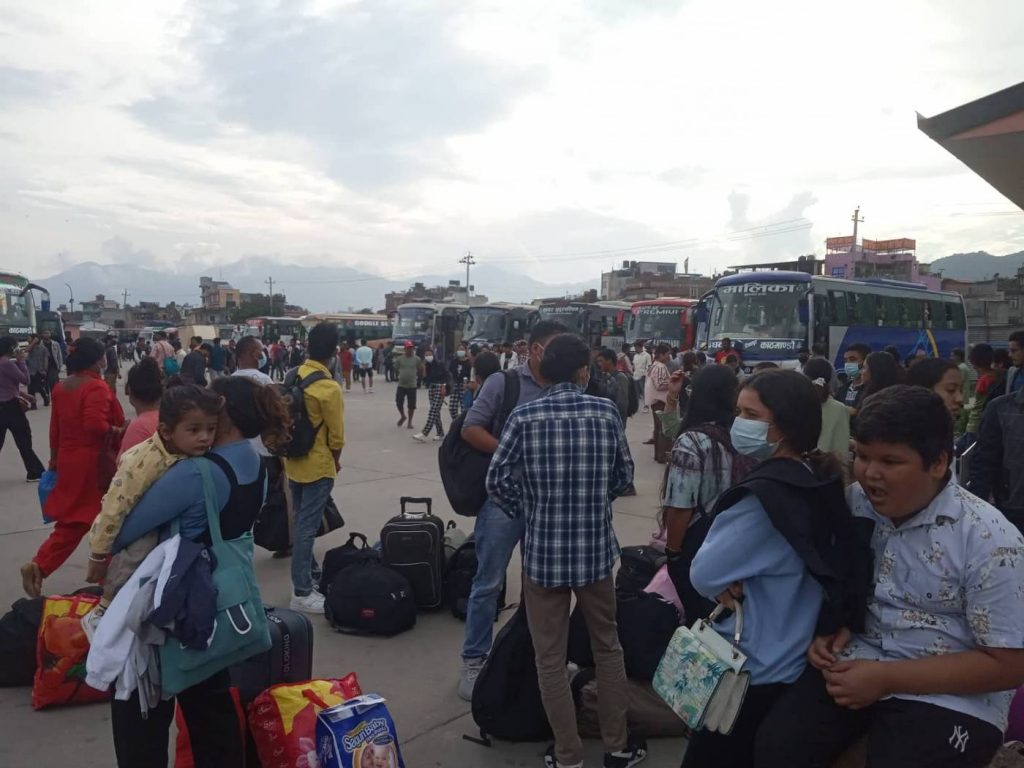 हिन्दूहरुको महान पर्व दसैँको मुख्य दिन नजिकिएसँगै काठमाडौं उपत्यका छाड्ने नेपालीको सङ्ख्या दिनदिनै बढ्दो छ । अन्य समयमा शनिवार प्रायः खाली हुने काठमाडौंका सडकमा आज भने सवारी साधनको बाक्लो उपस्थिति छ । पोका तथा पुन्तुरा बोकेर मानिस उपत्यका छाड्न हतारिएका दृष्य विभिन्न क्षेत्रमा देख्न सकिन्छ ।