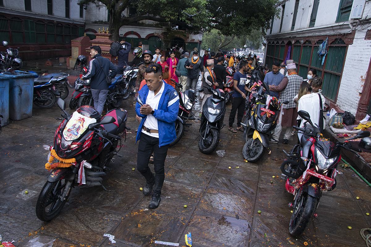 काठमाडौं । काठमाडौंको भद्रकाली मन्दिरमा सवारीसाधन पूजा गर्नेको भीड लागेको छ । बडा दशैँ अन्तर्गत आज महानवमीको अवसरमा शस्त्रअस्त्र तथा औजारहरु र अटो शोरुम, अटो वर्कशप तथा आफ्ना निजी सवारीहरु पूजा गर्नु अगाडि धोई,पखाली गाडी सर्भिसिङ गरिन्छ ।