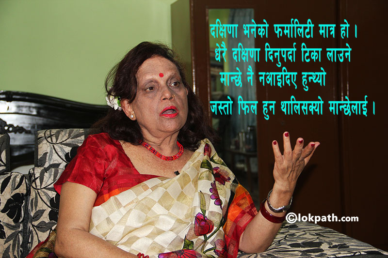 ज्वाईंलाई ५०० दक्षिणा : संस्कृतिविद् प्रा.डा.वीणा पौड्यालको दशैँ अनुभव, भन्छिन्, ‘उ बेलाको दशैँ पो दशैँ त !’