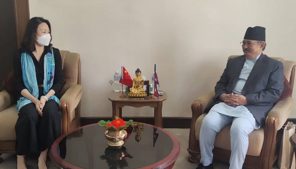 काठमाडौं । नेपालका लागि चिनियाँ राजदूत होउ यान्छीले गृहमन्त्री बालकृष्ण खाँणसँग बिदाइ भेट गरेकी छन् । बिहीबार बिहान सिंहदरबारस्थित गृह मन्त्रालयमा उनले गृहमन्त्रीसँग शिष्टाचार भेट गरेकी हुन् । भेटमा नेपाल–चीनबीचको आपसी सम्बन्ध, सहयोग आदानप्रदानलगायत विषयमा कुराकानी भएको थियो ।