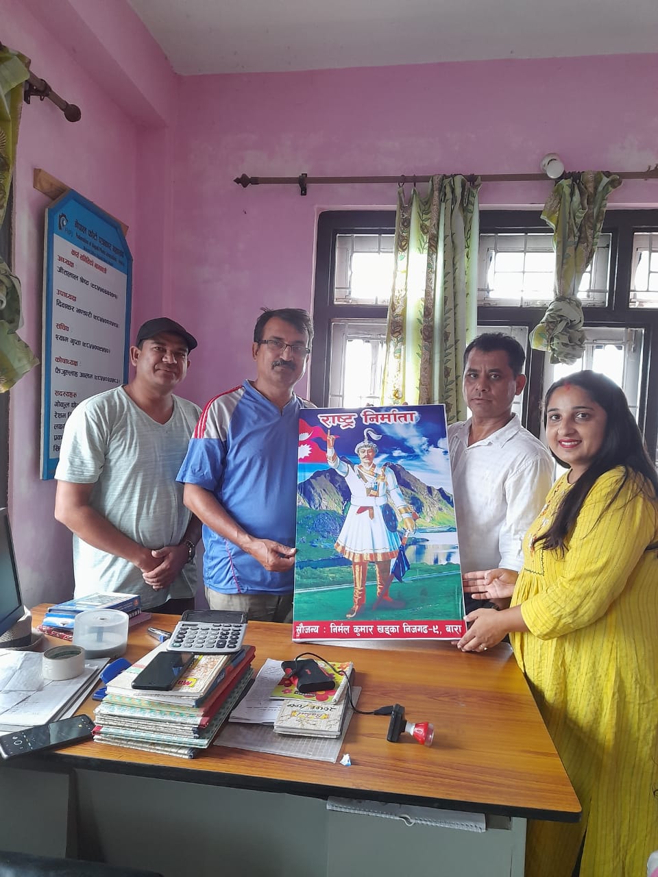 बारा । बाराको निजगढ नगरपालिका–९ निवासी समाजसेवी निर्मल खड्काले निजगढस्थित सरकारी र गैररकारी कार्यालयमा राष्ट्र निर्माता पृथ्वीनारायण शाहको तस्बिर राख्ने अभियान सुरु गरेका छन् ।